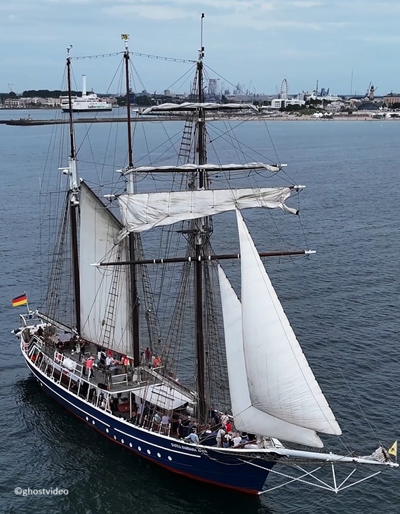 Diesen Anblick bekommt man ganz selten geboten: Die SANTA BARBARA ANNA, wie sie sonst nur die Möwen, die Götter und die amerikanischen Spionagesatelliten sehen!