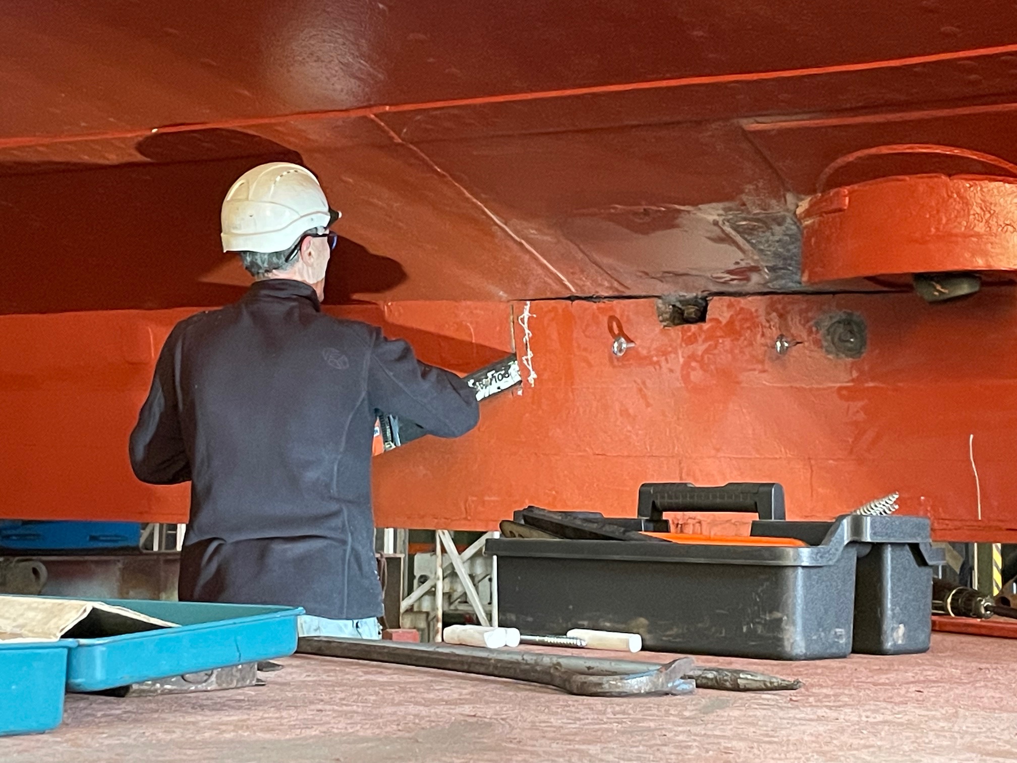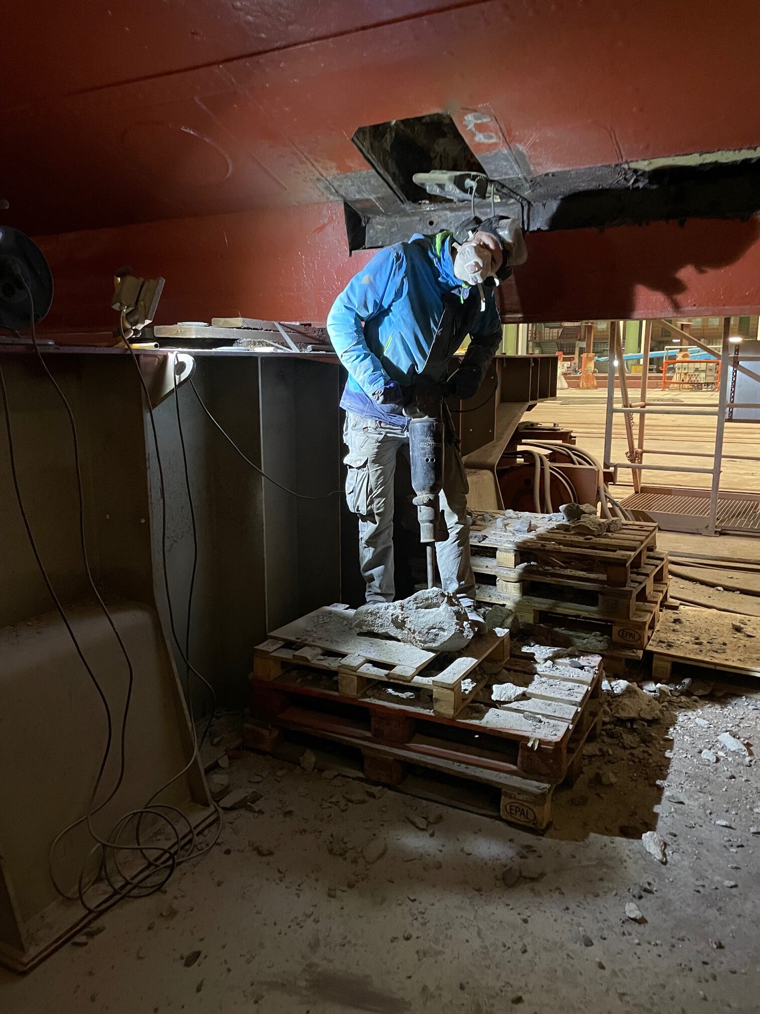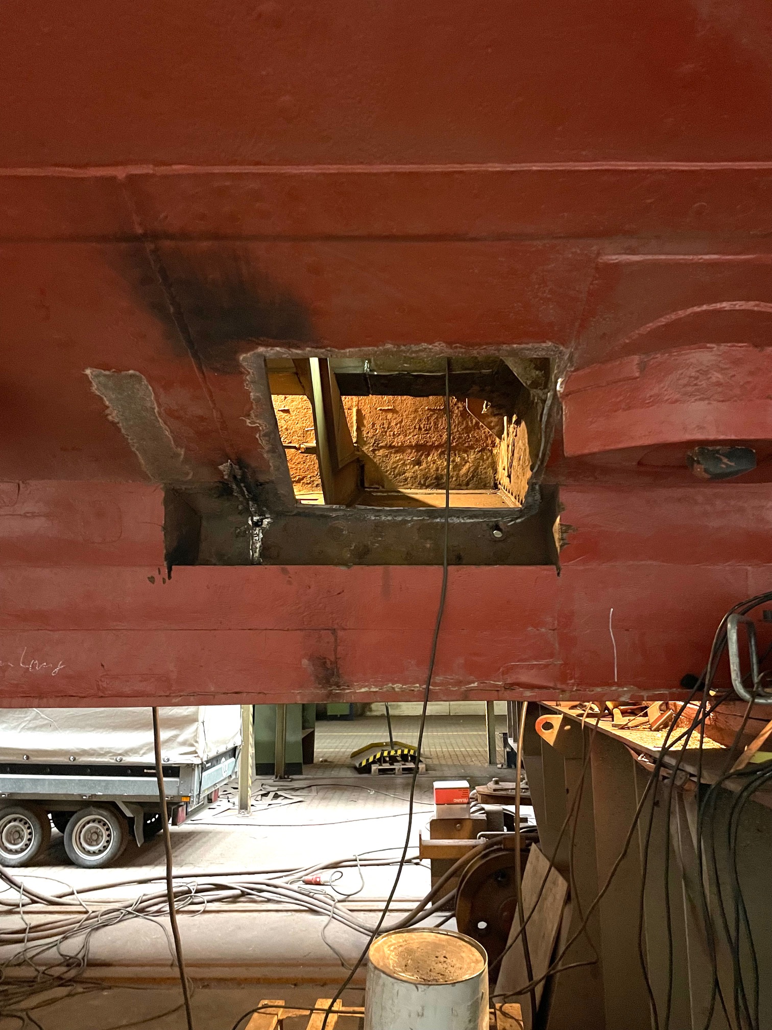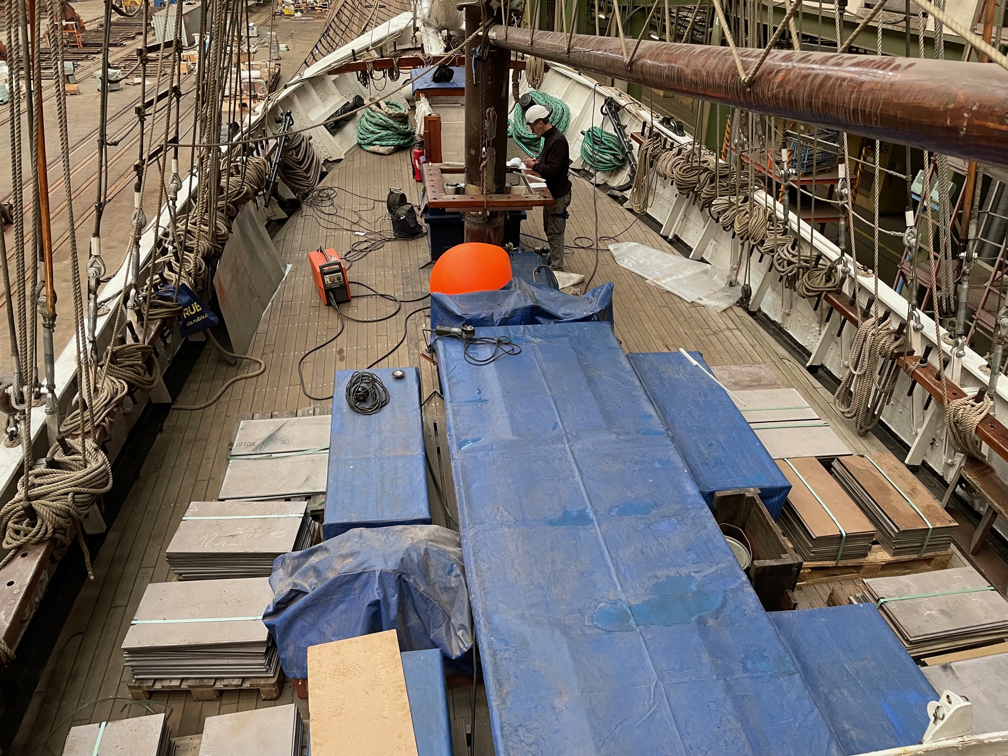Die Crew der Santa Barbara Anna hat die wohlverdiente Weihnachtspause beendet und die Arbeiten auf der Werft gehen weiter. Die beim Docken festgestellten Leckstellen konnten lokalisiert werden. An den Stellen wurde der Holzkiel freigeschnitten die Schadstellen großzügig freigelegt. Die Werftarbeiter setzten die Passstücke ein und somit sind die Stahlbauarbeiten wieder abgeschlossen. Die Konservierung ist mittlerweile auch wieder komplett. Die vor Ort tätigen Mitglieder des Bramschot e.V. haben die Zeit genutzt und ca. 17t Ballast im Kielbereich wieder eingebaut.